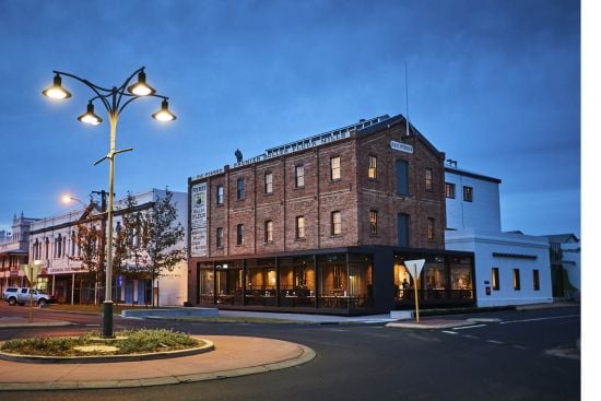 “The Premier Mill Hotel is a celebration of the rich fabric of the existing building. Formerly a flourmill it was an ingenious industrial invention of its time. It had become obsolete and the building slipped into disrepair; a similar fate suffered by many handsome heritage buildings of the wheat belt towns dating back to the prosperous gold rush era. In response to our client’s bold vision for tourism in the region we embraced the challenge of re-imaging the mill as a 22-room hotel including lobby, common areas, a café and basement bar retaining, exposing and expressing the industrial texture throughout. The result is a magical story of the building’s past, present and future made of layers of times past and times to come, it offers a new vision of the region for locals and visitors alike.”