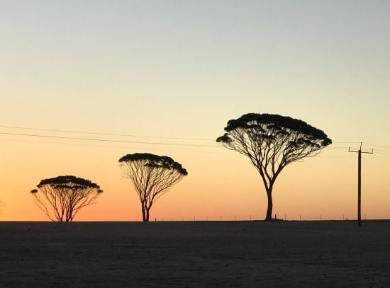 Look east from the Premier Mill Hotel, down Clive Street, across the valley of the town, and you can see, on the distant ridge, the last stand of jarrah trees of the South-West forests. This is the beginning of the great plains of the interior of Australia, and today’s trail will pass from the edge of the jarrah, through the southern Wheatbelt and the Mallee, and back again.
