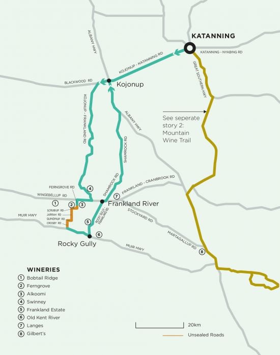 Turning for home, we head north on the Rocky Gully-Frankland Road, past another large winemaker, Frankland Estate, established in 1988. Its cellar sales are by appointment only, so call ahead when you are planning the trip if you’d like to do some tasting.