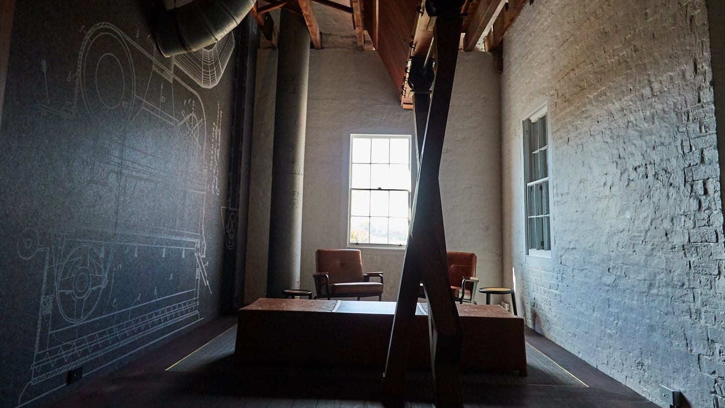 The rooms are all different to varying degrees by virtue of the found condition. Where possible the rooms have exposed remnant machinery and original timber structure. Elements such as inset carpets and full height curtains soften the industrial shell. New elements in the rooms are designed to complement the existing material textures adding amenity without clutter. All in-room furniture has been bespoke designed and locally craft manufactured.